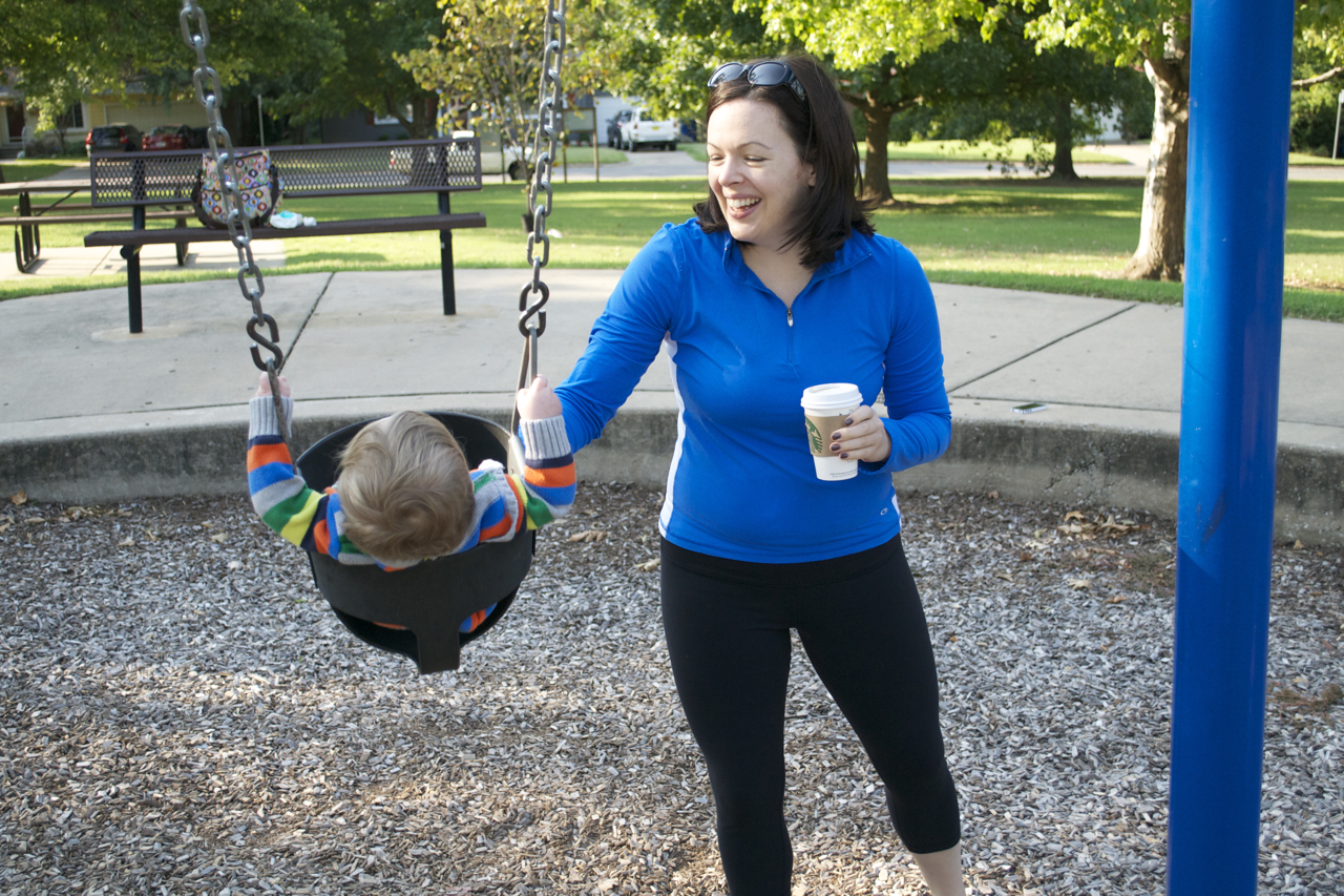 We had a great Sunday morning. Henry slept until 7:15 (beats the heck out of 5:30!), and after a delish breakfast of bacon and eggs, we headed out to the park for some swinging. This was Henry's first time in the baby swing. He wasn't sure of it at first, but he eventually got into it and couldn't stop smiling! He was a little less impressed with the slide.